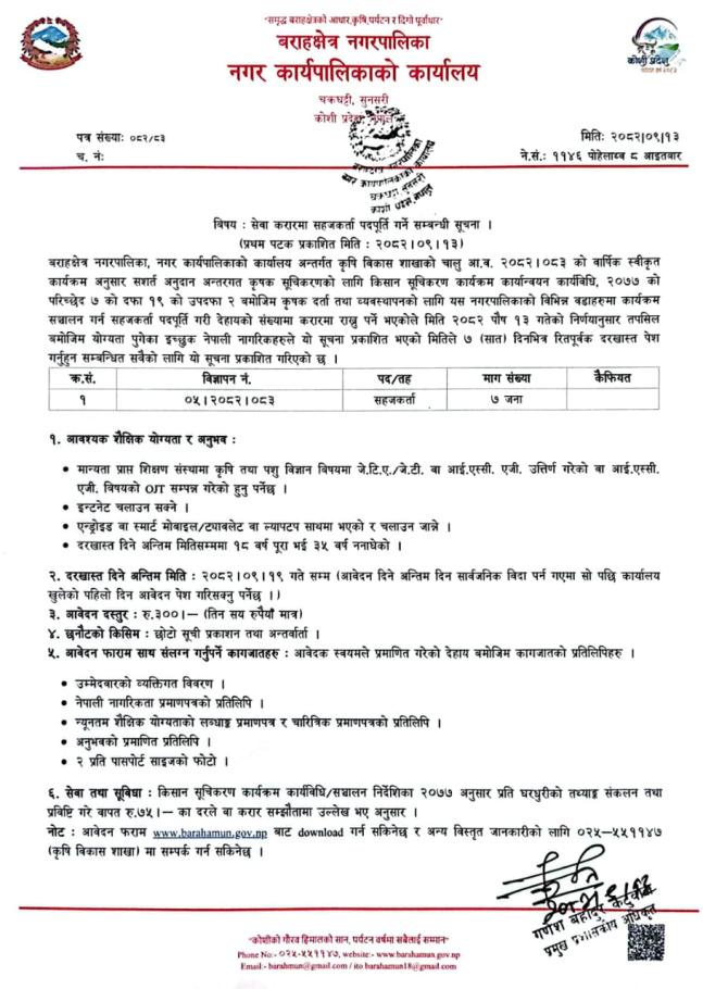 सहजकर्ता पदपुर्ति सम्बन्धी सूचना तथा फारम