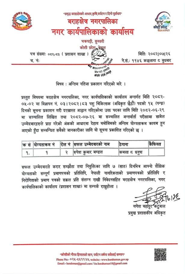 अन्तिम नतिजा प्रकाशन सम्बन्धी सूचना(पशु चिकित्सक)