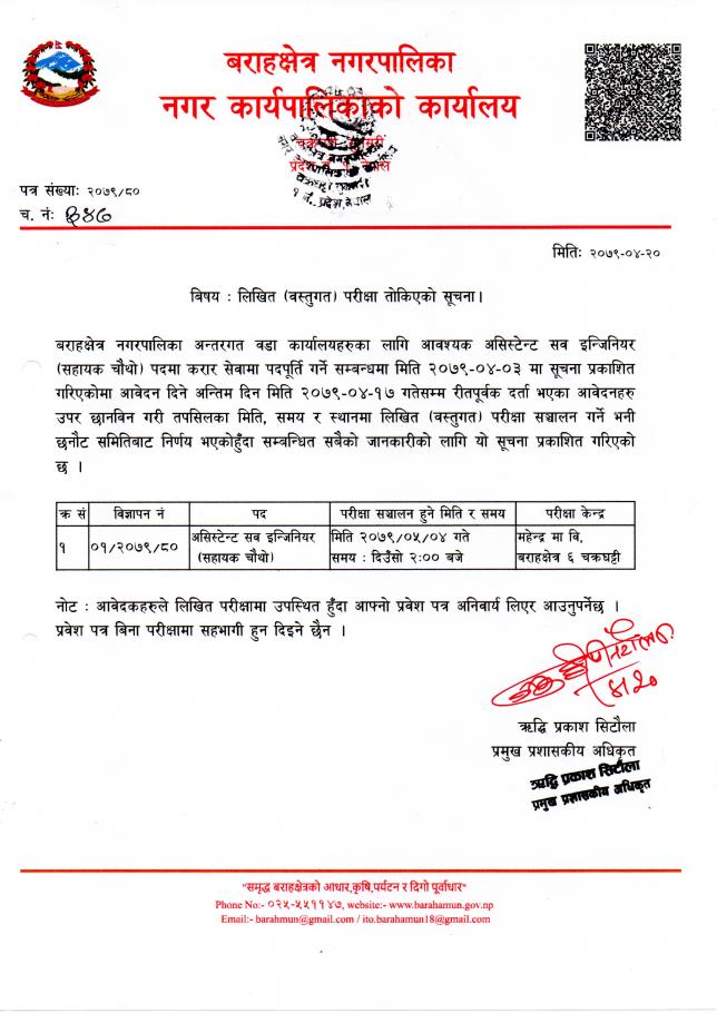 » असिस्टेन्ट सव ईन्जिनियरको परिक्षा सम्बन्धी सूचना