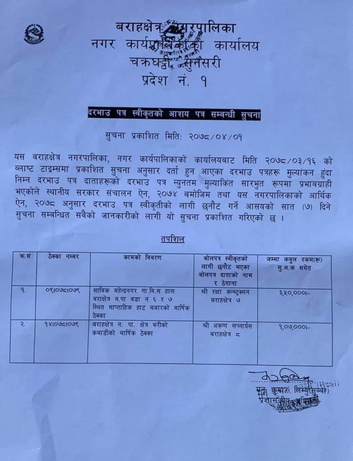 बराहक्षेत्र नगरपालिका,नगर कार्यपालिकाको कार्यालय , चक्रघट्टी, सुनसरी, कोशी प्रदेश ,नेपाल