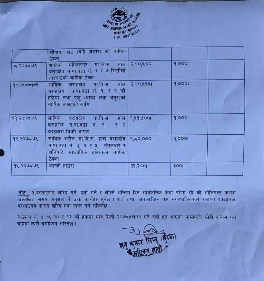 बराहक्षेत्र नगरपालिकाको निर्माण सामाग्री तथा ज्याला सम्बन्धी दररेट २०७९-८०