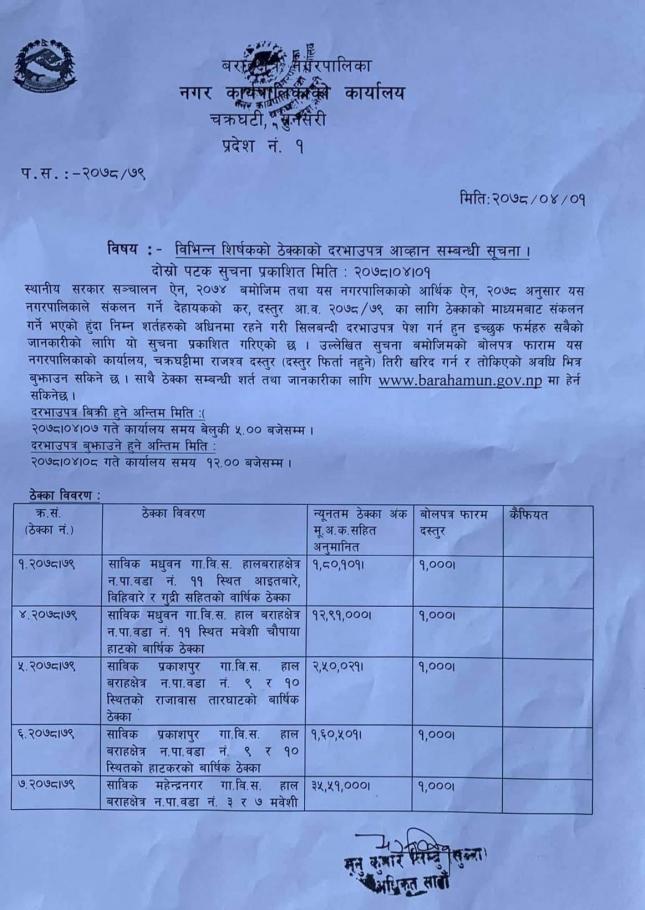 बराहक्षेत्र नगरपालिका,नगर कार्यपालिकाको कार्यालय , चक्रघट्टी, सुनसरी, कोशी प्रदेश ,नेपाल