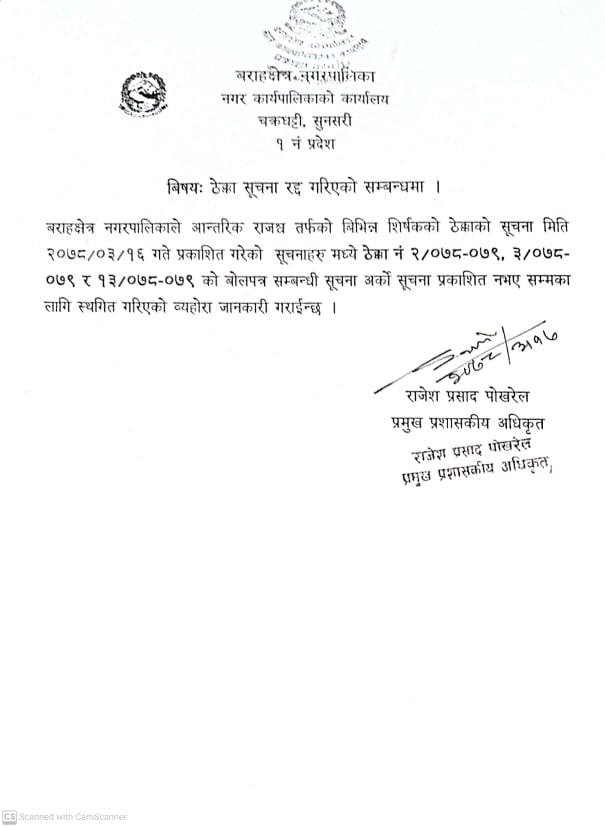 बराहक्षेत्र नगरपालिका,नगर कार्यपालिकाको कार्यालय , चक्रघट्टी, सुनसरी, कोशी प्रदेश ,नेपाल