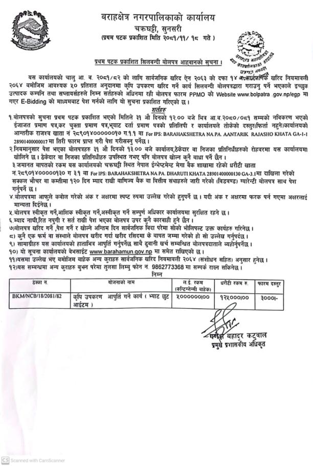 कृषि उपकरण खरिद सम्बन्धी सूचना