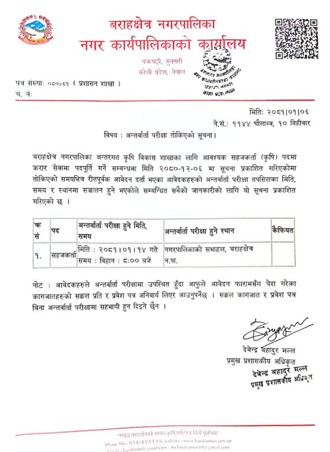» कृषि सहजकर्ताको अन्तर्वार्ता को मिति सम्बन्धी सूचना
