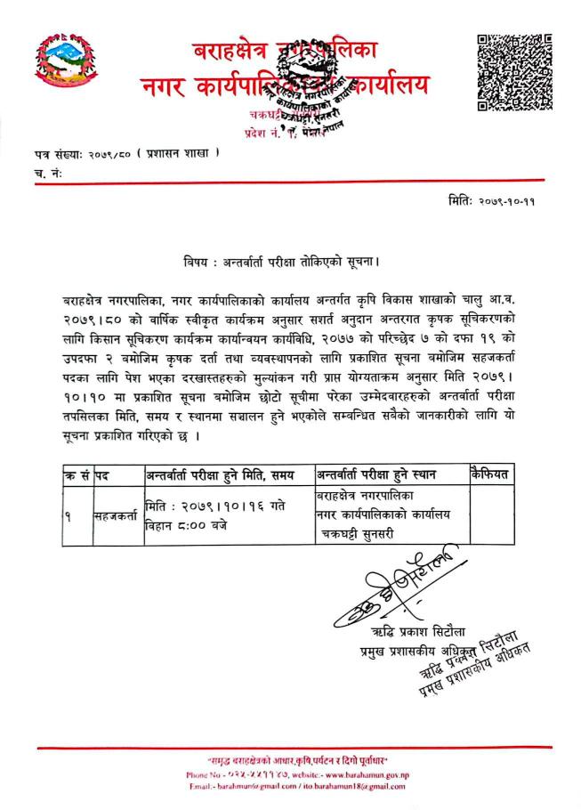 » कृषि सहजकर्ता अन्तर्वार्ताको मिति तोकिएको सम्बन्धमा ।