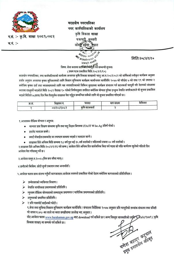 प्रथम पटक प्रकाशित सूचना (कृषि तथा पश सेवा शाखा)