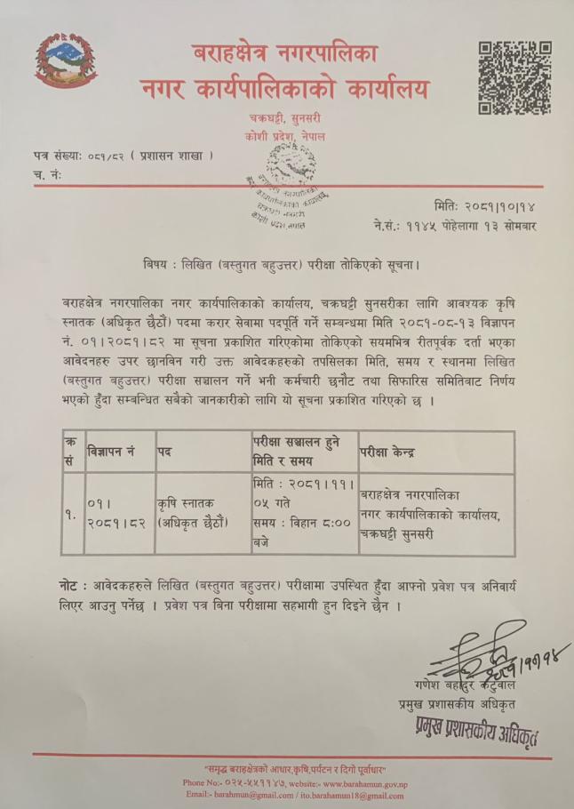 बराहक्षेत्र नगरपालिका,नगर कार्यपालिकाको कार्यालय , चक्रघट्टी, सुनसरी, कोशी प्रदेश ,नेपाल