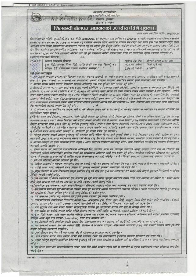 सार्वजनिक खरिद/बोलपत्र सूचना