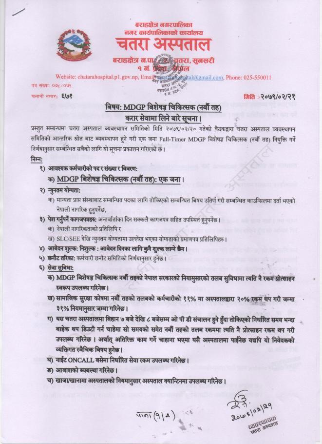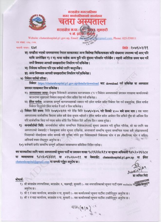 चतरा अस्पतालमा बिशेषज्ञ डाक्टर लिने सम्बन्धमा