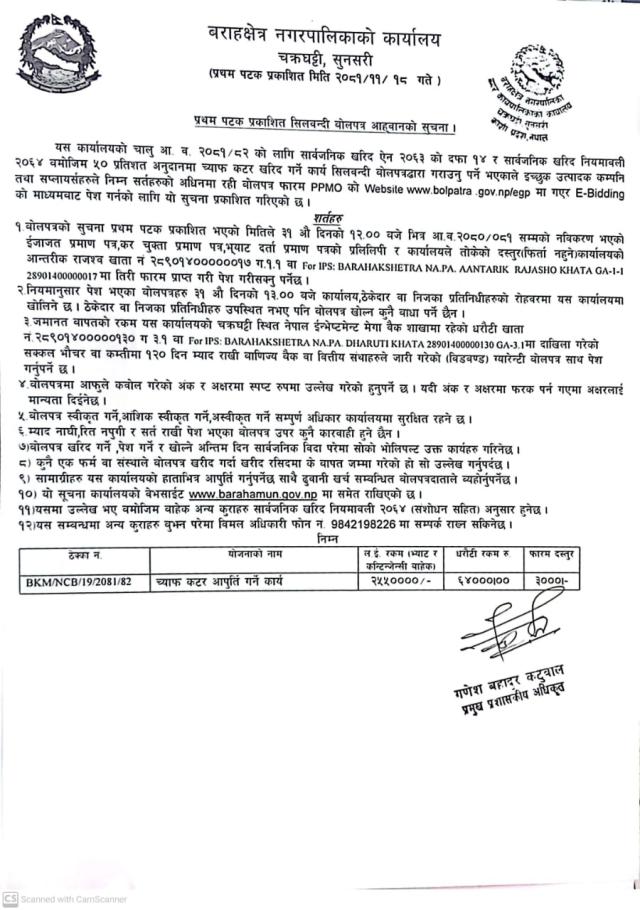बराहक्षेत्र नगरपालिका,नगर कार्यपालिकाको कार्यालय , चक्रघट्टी, सुनसरी, कोशी प्रदेश ,नेपाल