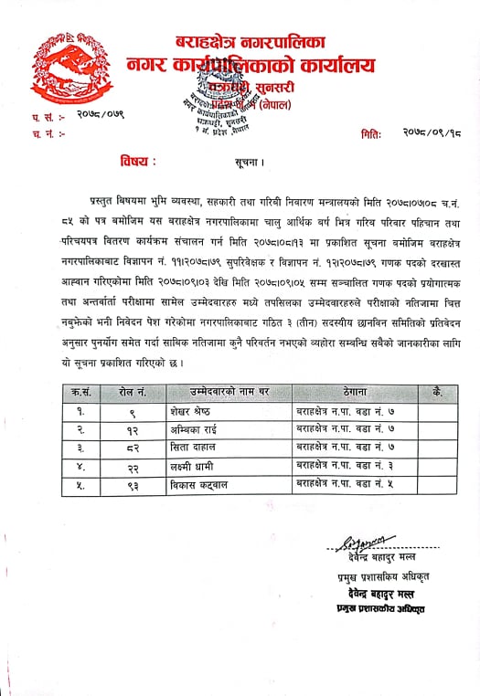 बराहक्षेत्र नगरपालिका,नगर कार्यपालिकाको कार्यालय , चक्रघट्टी, सुनसरी, कोशी प्रदेश ,नेपाल