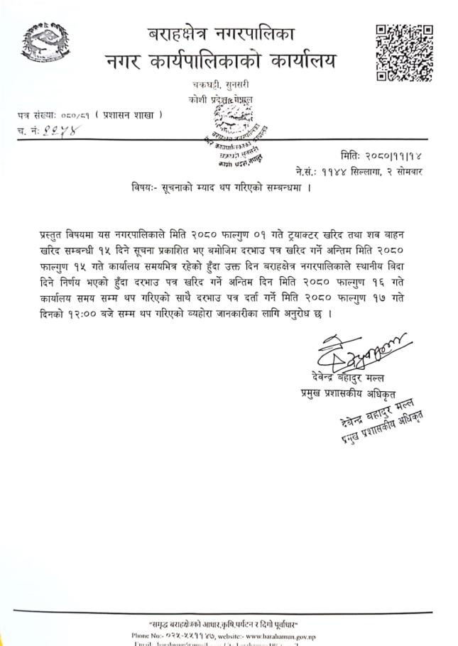 » ट्रयाक्टर खरिदको म्याद थप सम्बन्धी सूचना