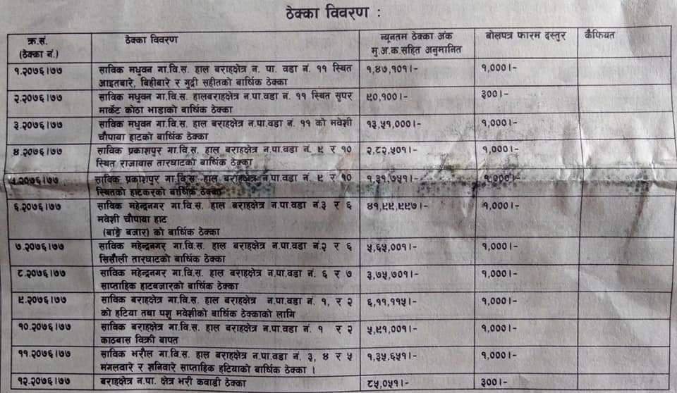 » ठेक्काको शिलबन्दी बोलपत्र आह्वानको सूचना
