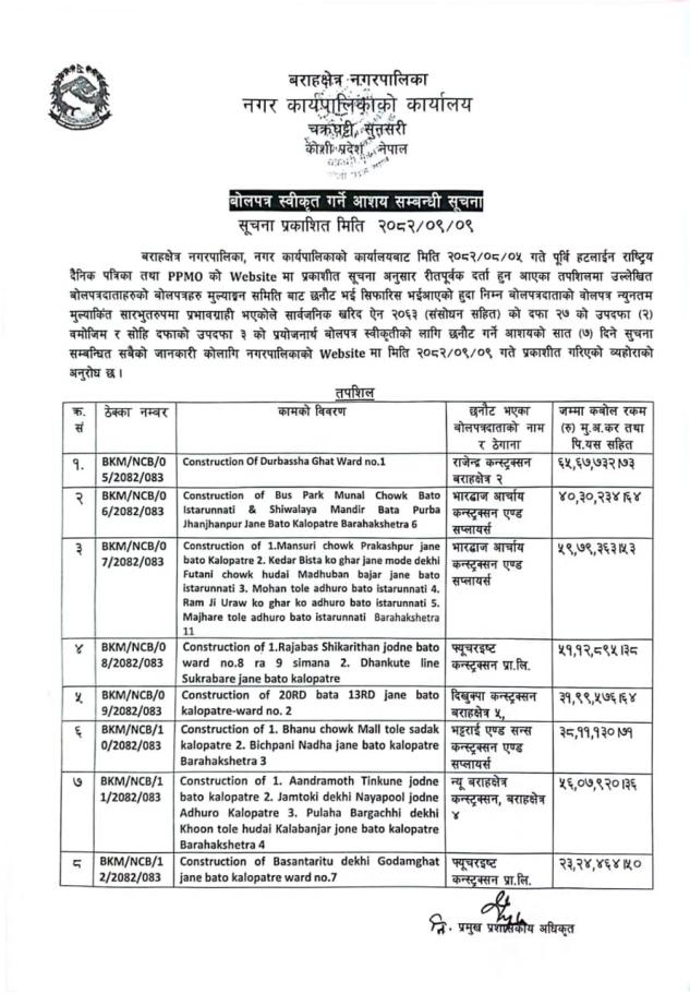 बराहक्षेत्र नगरपालिकाको निर्माण सामाग्री तथा ज्याला सम्बन्धी दररेट २०७९-८०