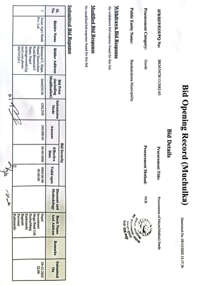 सार्वजनिक खरिद/बोलपत्र सूचना