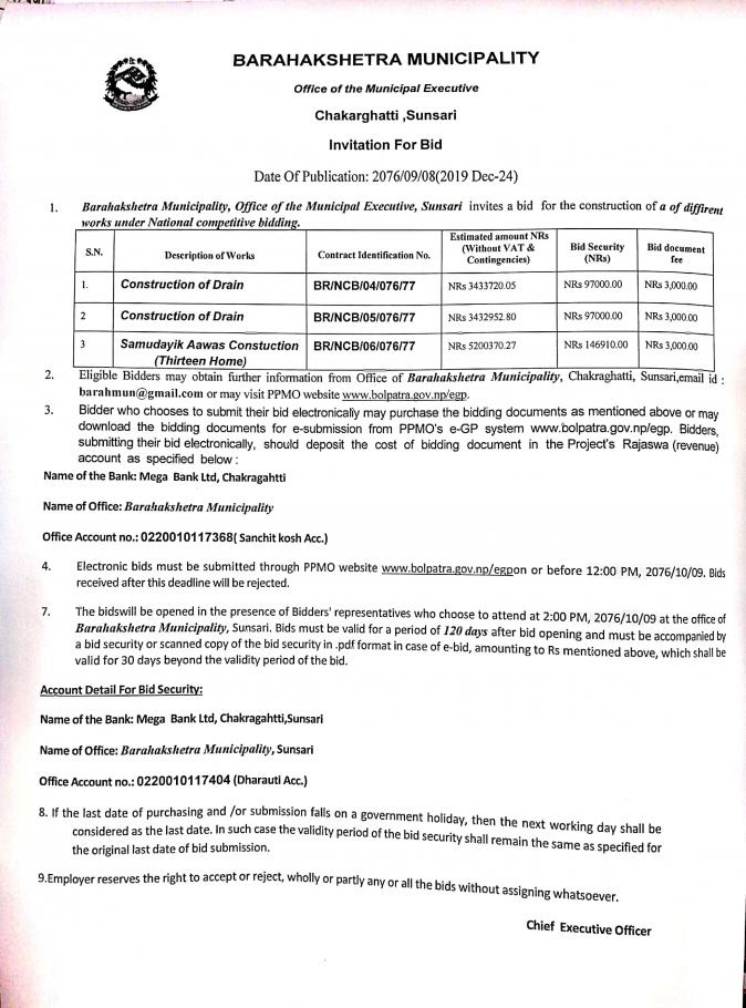 ड्रेन तथा भवनको E-Bidding को सूचना