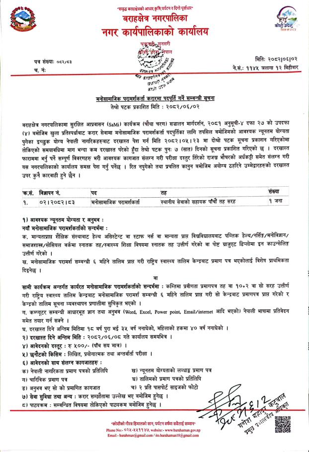 तेश्रो पटक प्रकाशित मनोसामाजिक परामर्श दाता सम्बन्धि सूचना