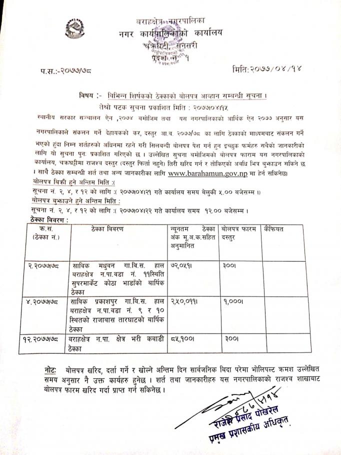 ठेक्का आव्हान सम्बन्धी सूचना