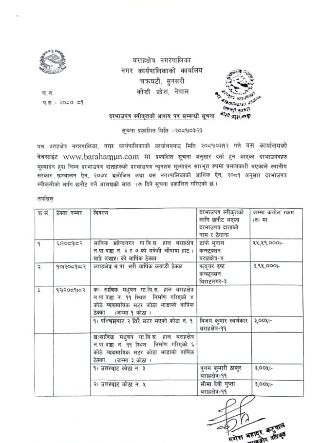 दरभाउपत्र आसय सम्बन्धी सूचना