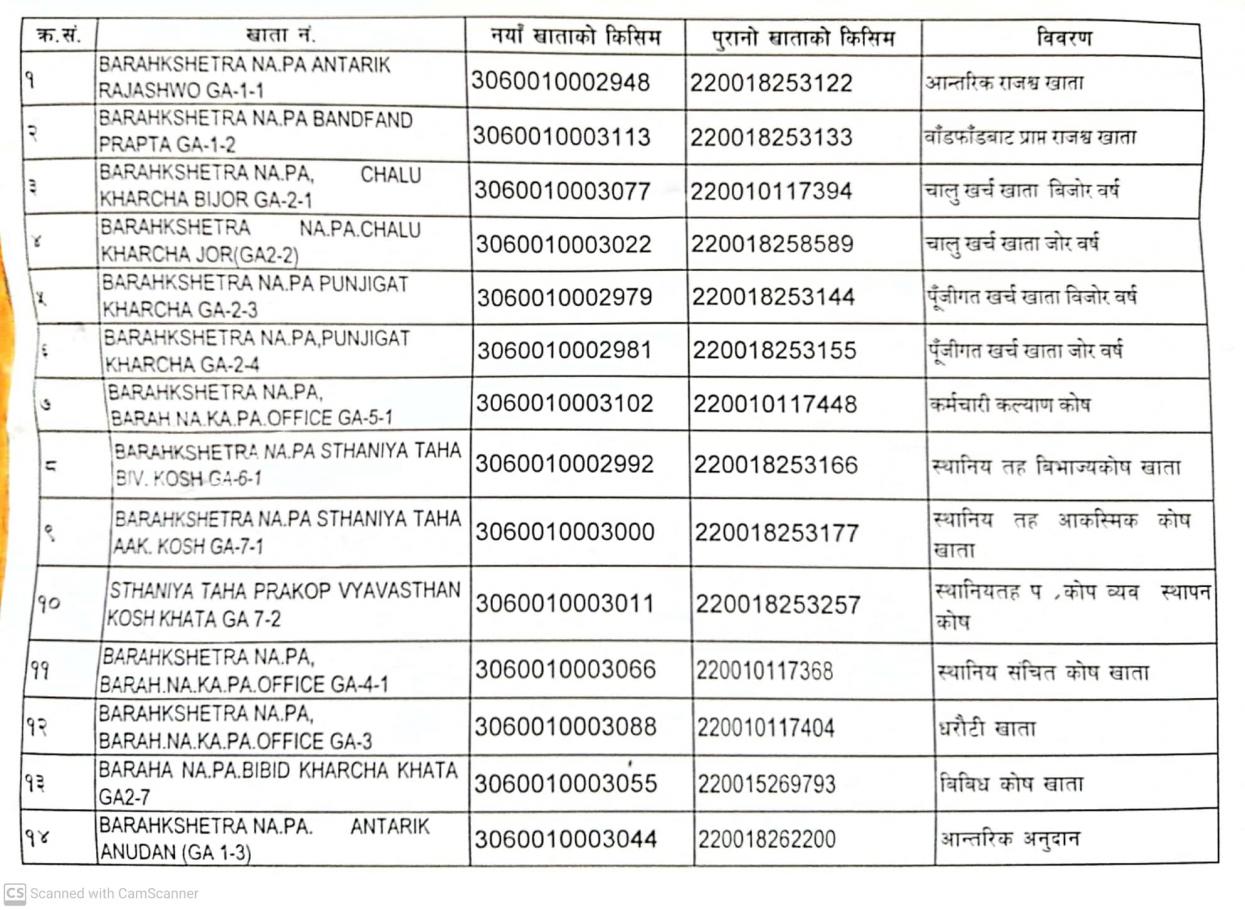 नगरपालिका अन्तर्गत बिभिन्न खाताका नम्बरहरु