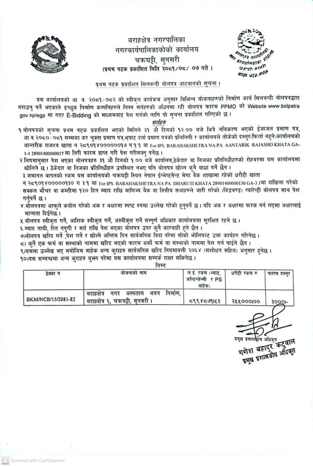 नगर अस्पताल भवन निर्माण शिलबन्दी प्रस्ताव आव्हान सम्बन्धि सूचना