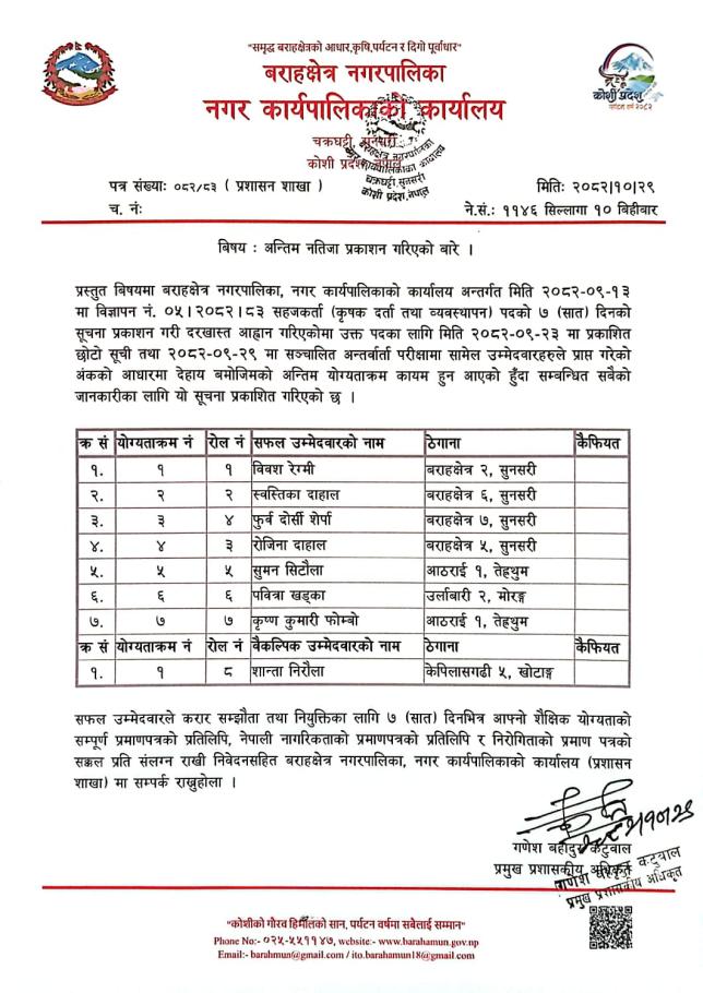 नतिजा प्रकाशन सम्बन्धि सूचना