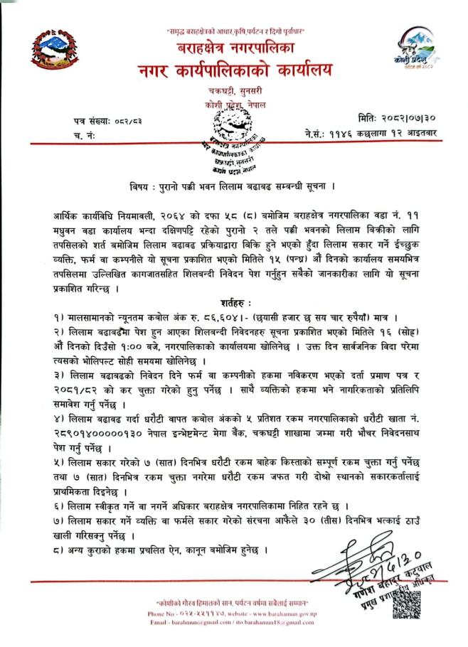 पुरानो पक्की भवन लिलाम बढाबढ सम्बन्धी सूचना