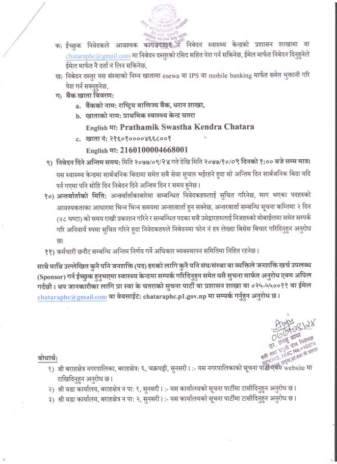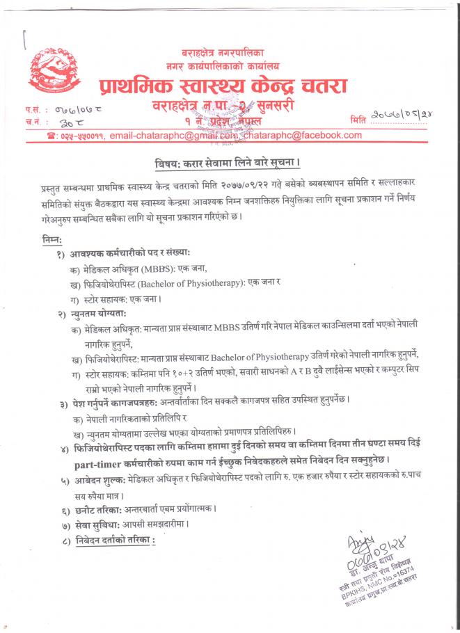 प्राथमिक स्वास्थ्य चाैकीमा कर्मचारी करार नियुक्ति सम्बन्धी सूचना