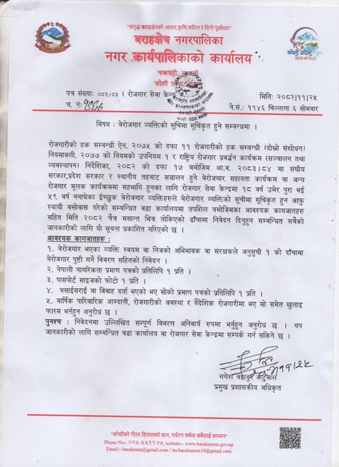 बेरोजगार व्यक्तिको सूचिमा सूचिकृत हुने सम्बन्धमा सूचना र फारम