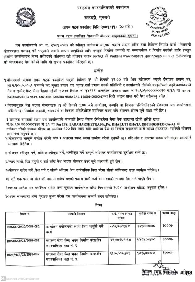 सार्वजनिक खरिद/बोलपत्र सूचना