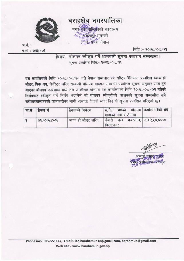 बराहक्षेत्र नगरपालिका,नगर कार्यपालिकाको कार्यालय , चक्रघट्टी, सुनसरी, कोशी प्रदेश ,नेपाल