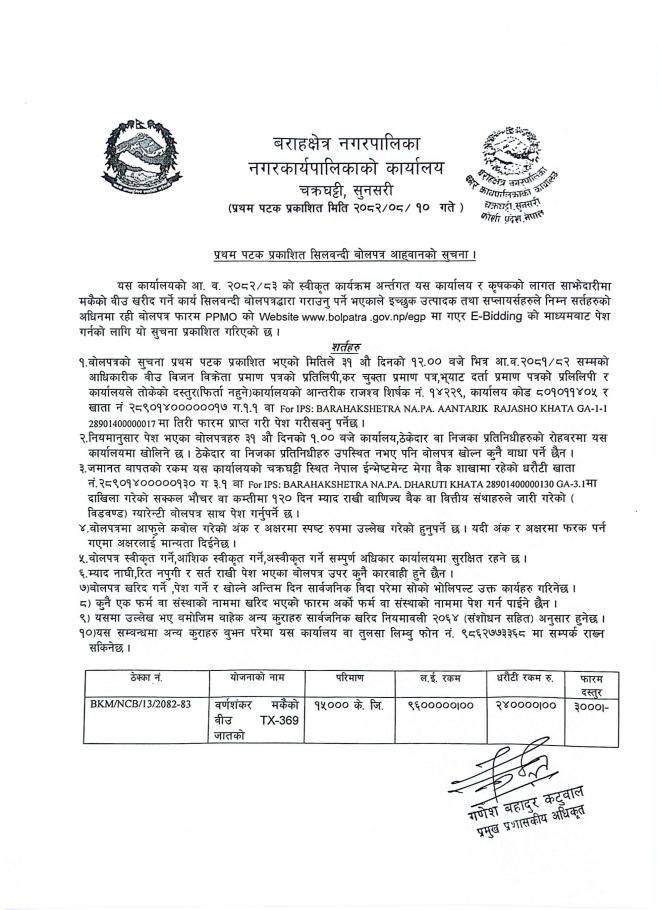 मकैको बीउ खरिदका लागि E-bidding सम्बन्धि सुचना