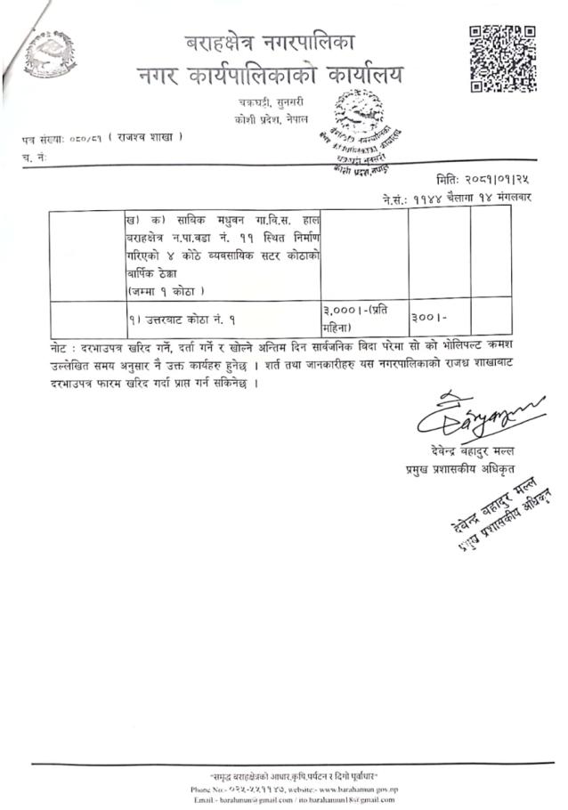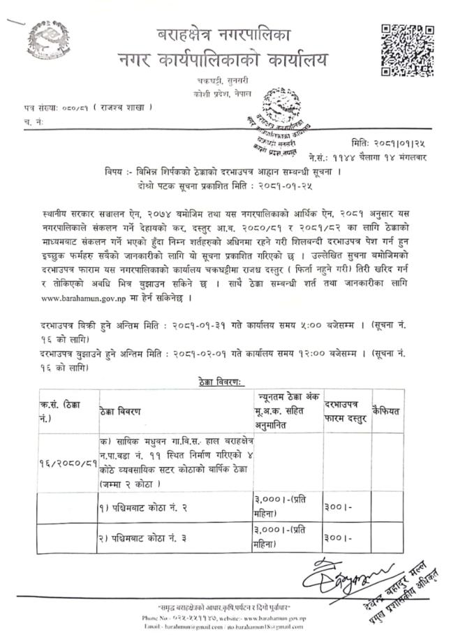 बराहक्षेत्र नगरपालिका,नगर कार्यपालिकाको कार्यालय , चक्रघट्टी, सुनसरी, कोशी प्रदेश ,नेपाल