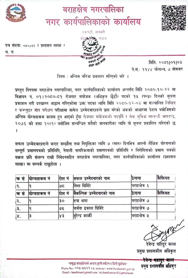 » रोजगार संयोजकको अन्तिम नतिजा प्रकाशन सम्बन्धमा