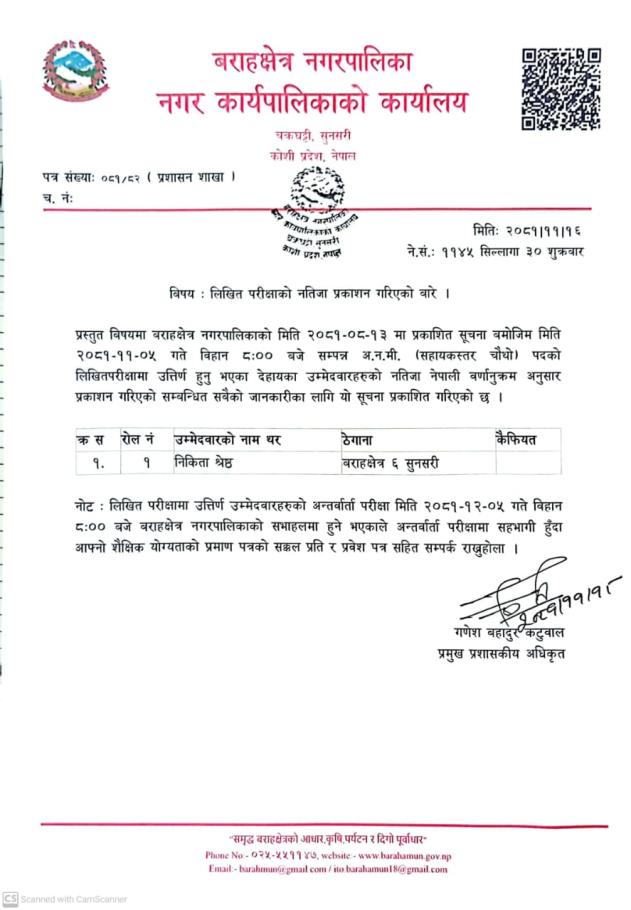 » लिखित परिक्षाको नतिजा प्रकाशन सम्बन्धमा(अ.न.मी)
