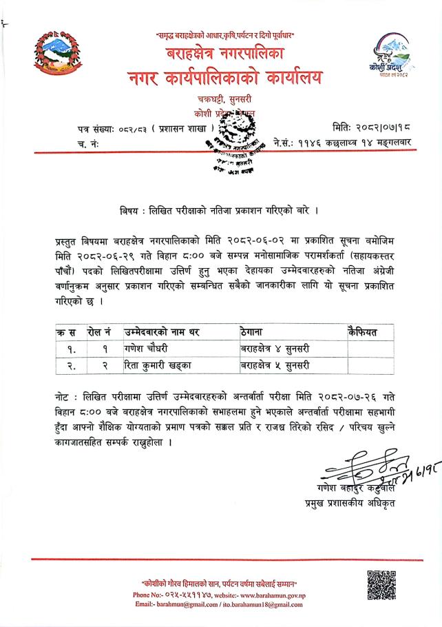» लिखित परिक्षाको नतिजा र अन्तर्वाता सम्बन्धी सूचना (मनोसामाजिक परामर्शकर्ता)