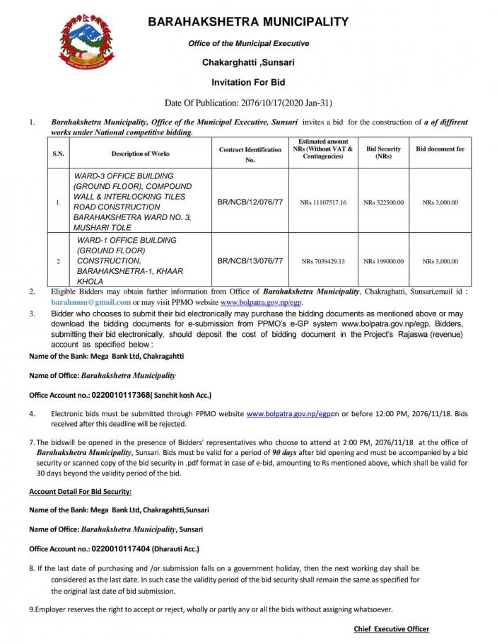 वडा कार्यालय भवन निर्माण सम्बन्धी E-bidding को सूचना