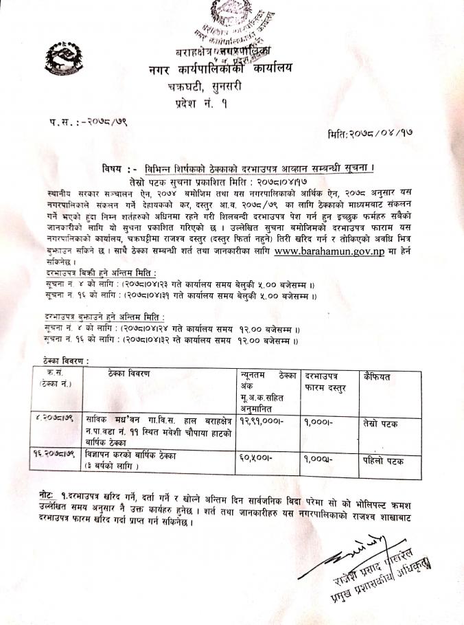 » वडा नं ११ मवेशी चौपाया हाट तथा बिज्ञापन करको बार्षिक ठेक्का सम्बन्धी सूचना