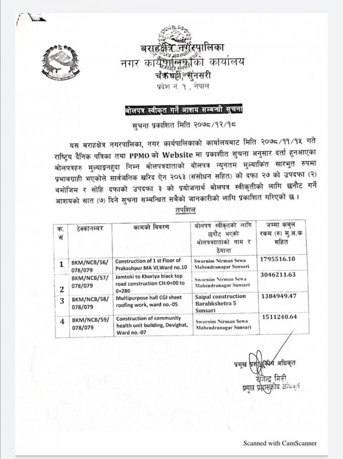 विभिन्न ठेक्का को आसयको सूचना