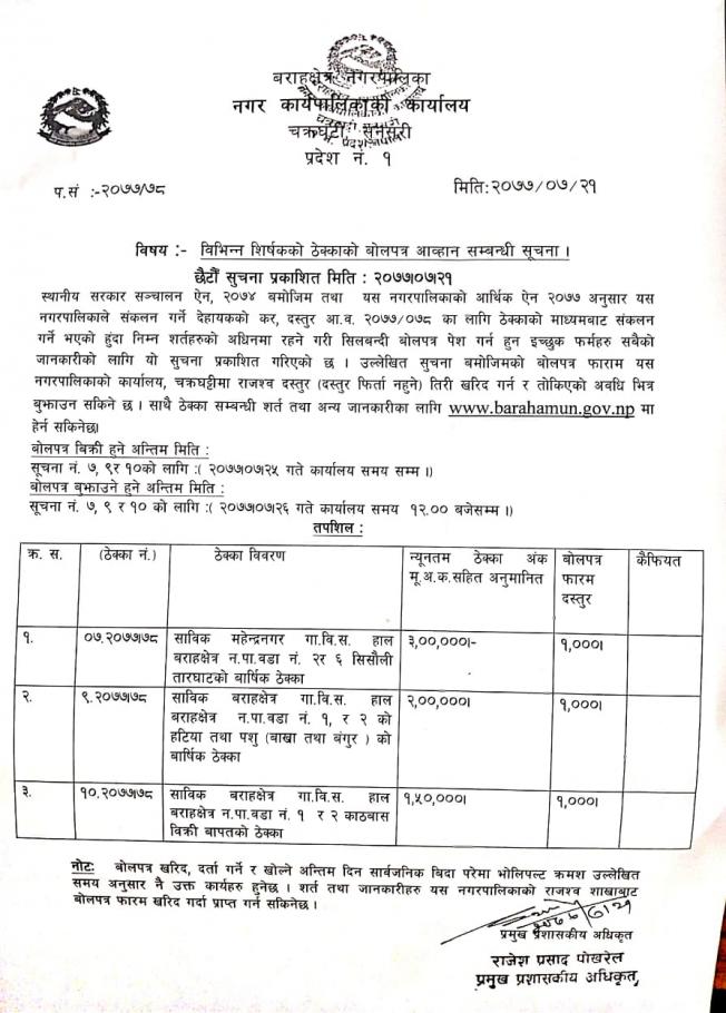 » विभिन्न शिर्षककाे ठेक्काकाे बाेलपत्र सम्बन्धी छैटाैँ पटक प्रकाशित सूचना