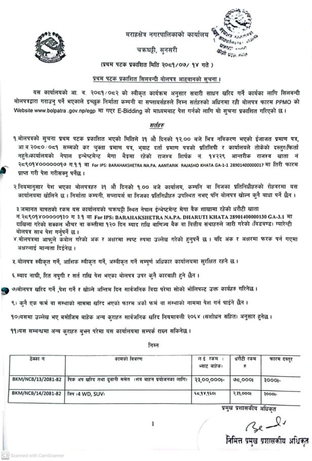 सार्वजनिक खरिद/बोलपत्र सूचना