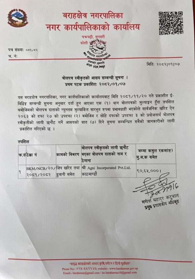बराहक्षेत्र नगरपालिका,नगर कार्यपालिकाको कार्यालय , चक्रघट्टी, सुनसरी, कोशी प्रदेश ,नेपाल