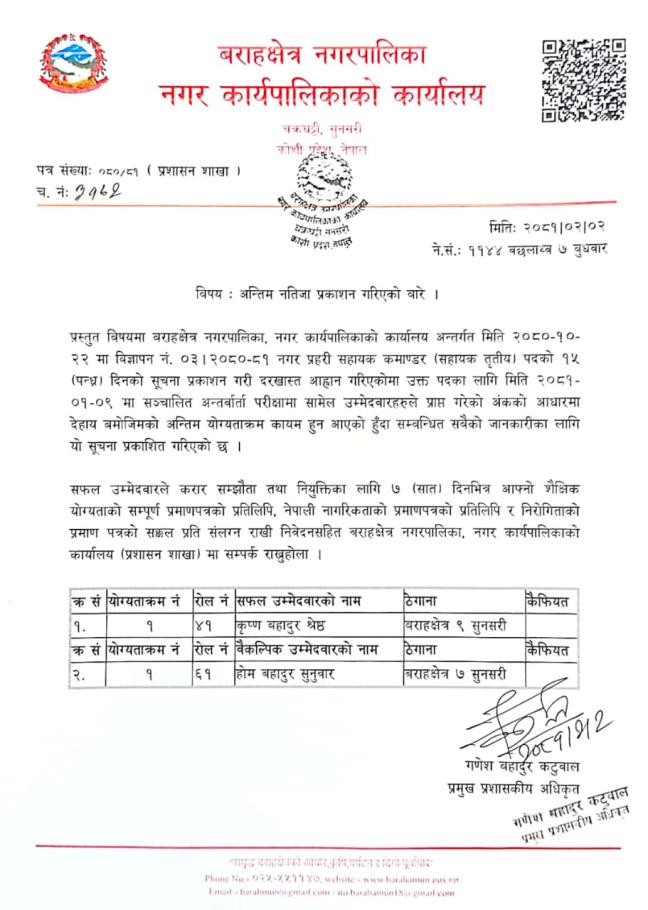 » सहायक प्रहरी कमाण्डरको अन्तिम नतिजा प्रकाशन सम्बन्धि सूचना