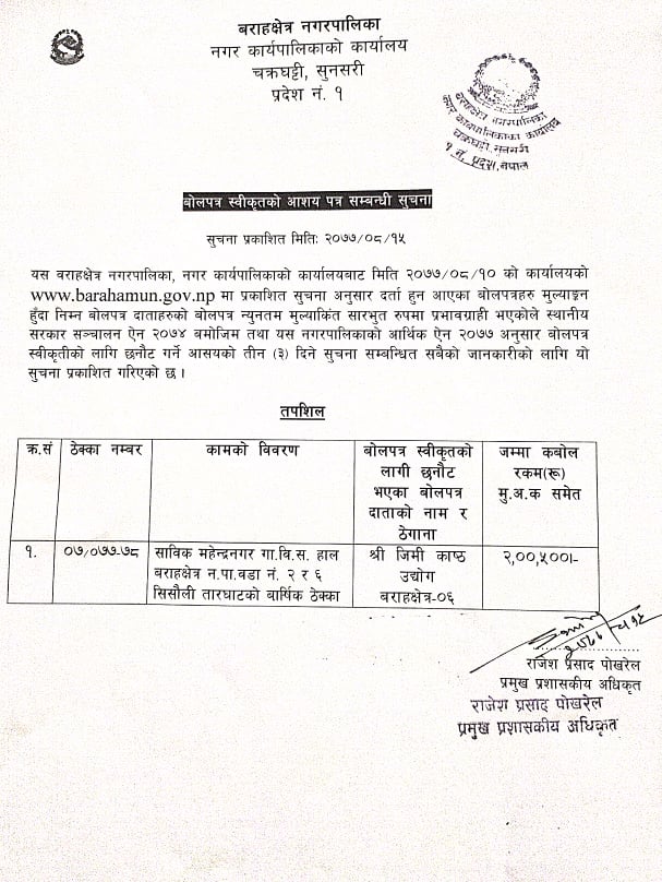 » सिसाैली तारघाटको बार्षिक ठेक्का स्वीकृतिको आशयको सूचना