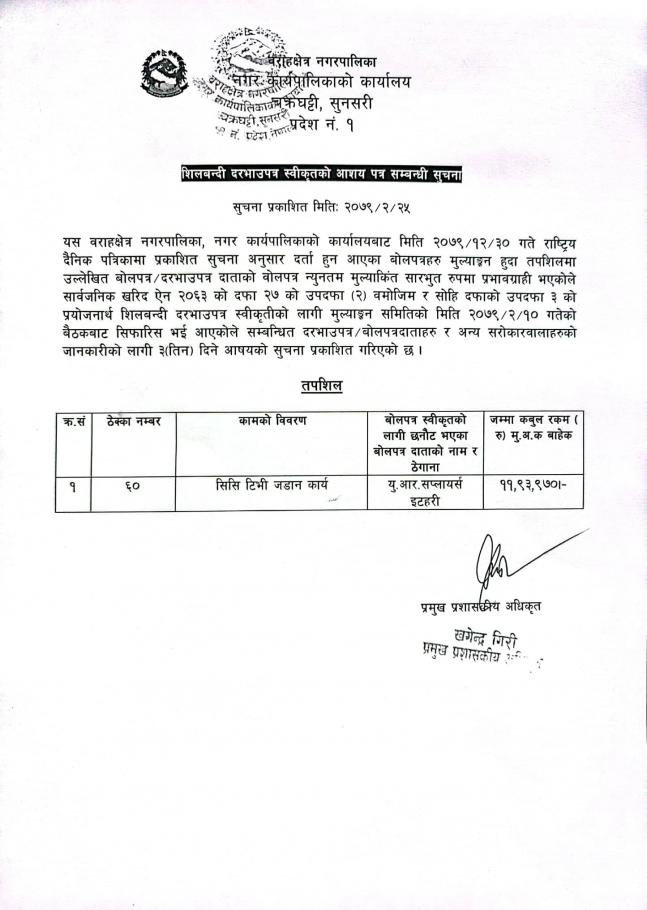 ठेक्का आव्हान सम्बन्धी सूचना