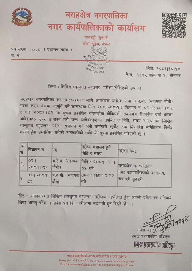 बराहक्षेत्र नगरपालिका,नगर कार्यपालिकाको कार्यालय , चक्रघट्टी, सुनसरी, कोशी प्रदेश ,नेपाल