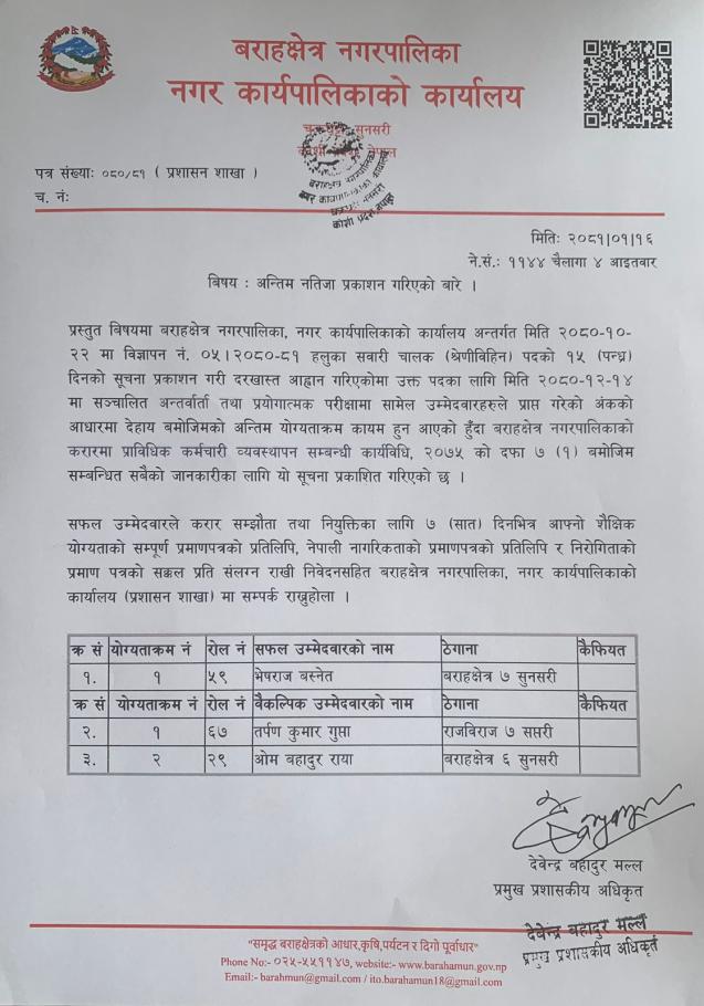 बराहक्षेत्र नगरपालिका,नगर कार्यपालिकाको कार्यालय , चक्रघट्टी, सुनसरी, कोशी प्रदेश ,नेपाल