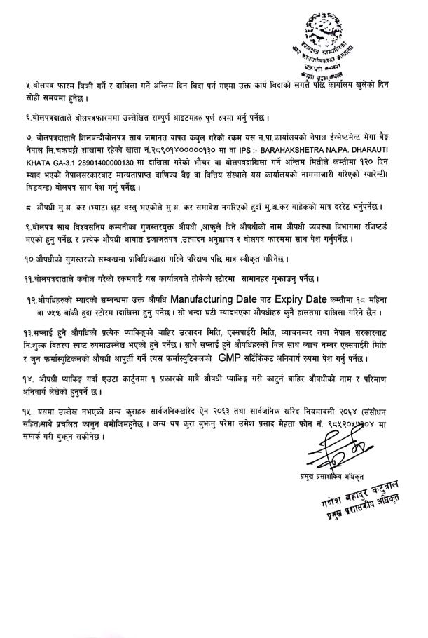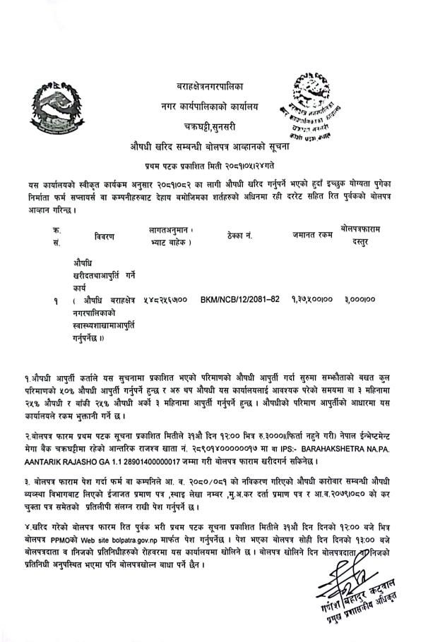 सार्वजनिक खरिद/बोलपत्र सूचना