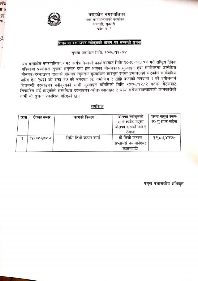 सार्वजनिक खरिद/बोलपत्र सूचना